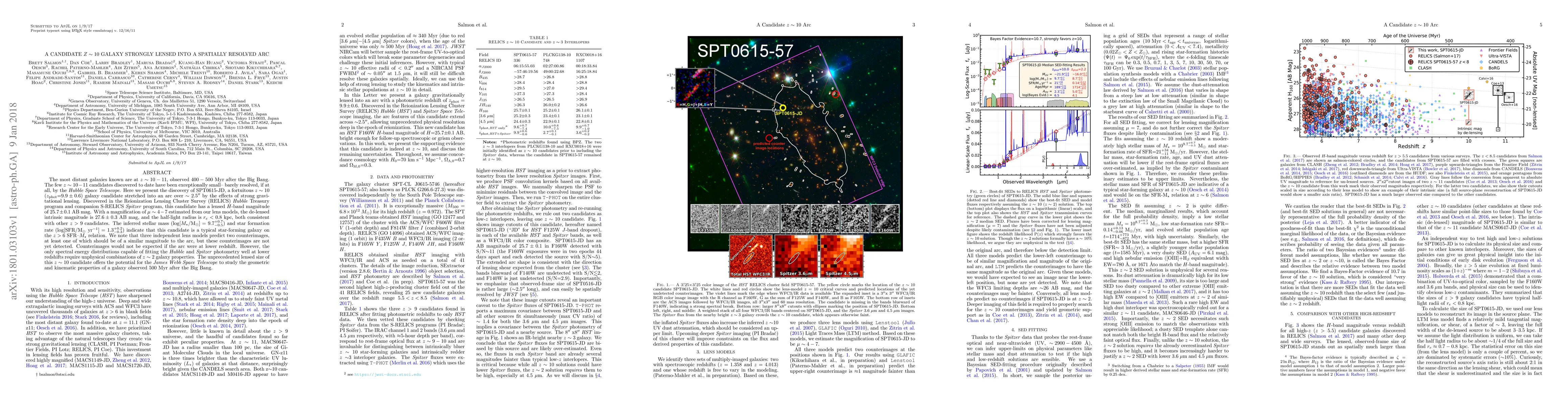 This paper reports the discovery of SPT0615-JD, a z~10 galaxy strongly lensed into a spatially resolved arc, providing a rare opportunity to study its properties. The lensed galaxy has a half-light radius of less than 0.8 kpc and a typical star formation rate, suggesting it is a normal star-forming galaxy from the early universe.