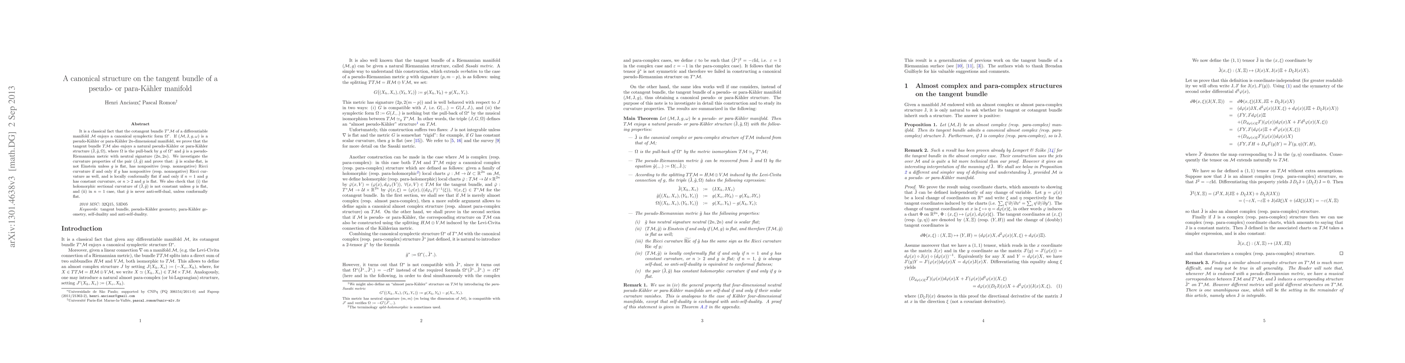 This paper establishes a canonical pseudo-Kähler or para-Kähler structure on the tangent bundle of a pseudo-Kähler or para-Kähler manifold, exploring its curvature properties. The structure includes a pseudo-Riemannian metric $\G$ with specific curvature conditions dependent on the base manifold's Ricci curvature.