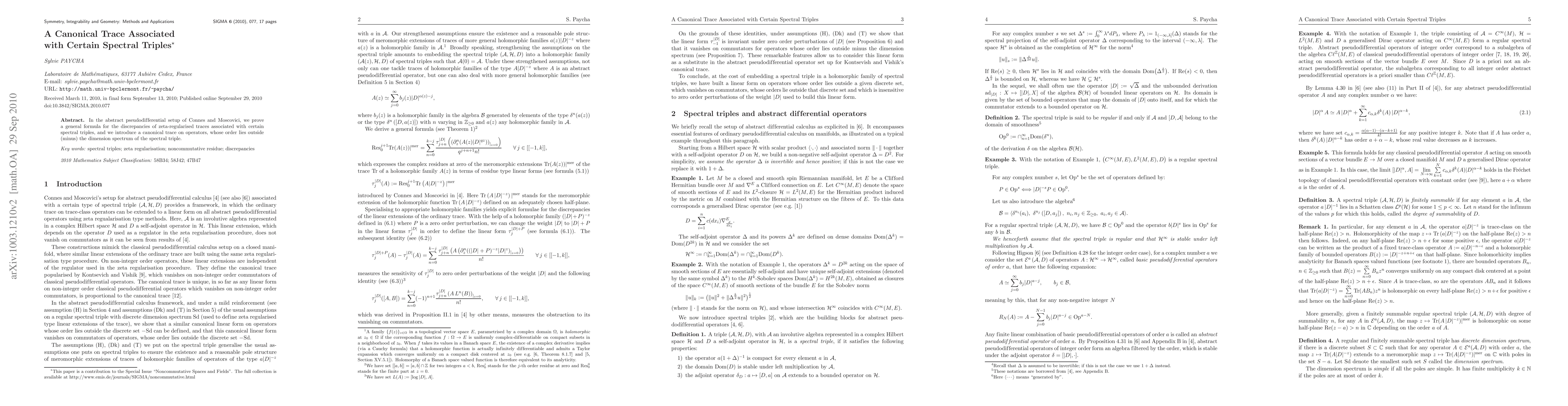 In the abstract pseudodifferential setup of Connes and Moscovici, we prove a general formula for the discrepancies of zeta-regularised traces associated with certain spectral triples, and we introduce a canonical trace on operators, whose order lies outside (minus) the dimension spectrum of the spectral triple.