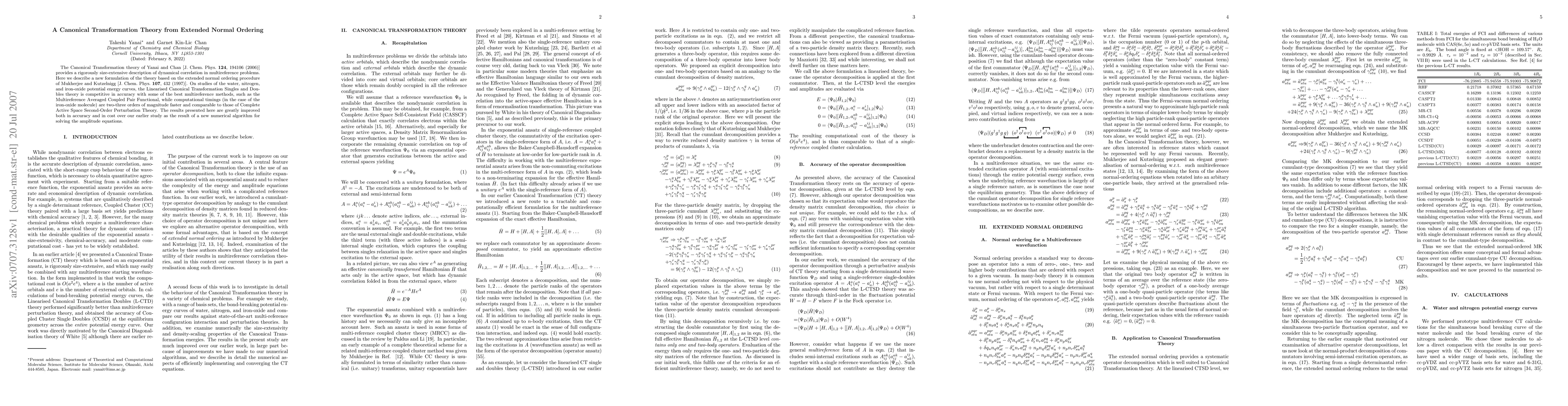 The Canonical Transformation theory of Yanai and Chan [J. Chem. Phys. 124, 194106 (2006)] provides a rigorously size-extensive description of dynamical correlation in multireference problems. Here we describe a new formulation of the theory based on the extended normal ordering procedure of Mukherjee and Kutzelnigg [J. Chem. Phys. 107, 432 (1997)]. On studies of the water, nitrogen, and iron-oxide potential energy curves, the Linearised Canonical Transformation Singles and Doubles theory is competitive in accuracy with some of the best multireference methods, such as the Multireference Averaged Coupled Pair Functional, while computational timings (in the case of the iron-oxide molecule) are two-three orders of magnitude faster and comparable to those of Complete Active Space Second-Order Perturbation Theory. The results presented here are greatly improved both in accuracy and in cost over our earlier study as the result of a new numerical algorithm for solving the amplitude equations.