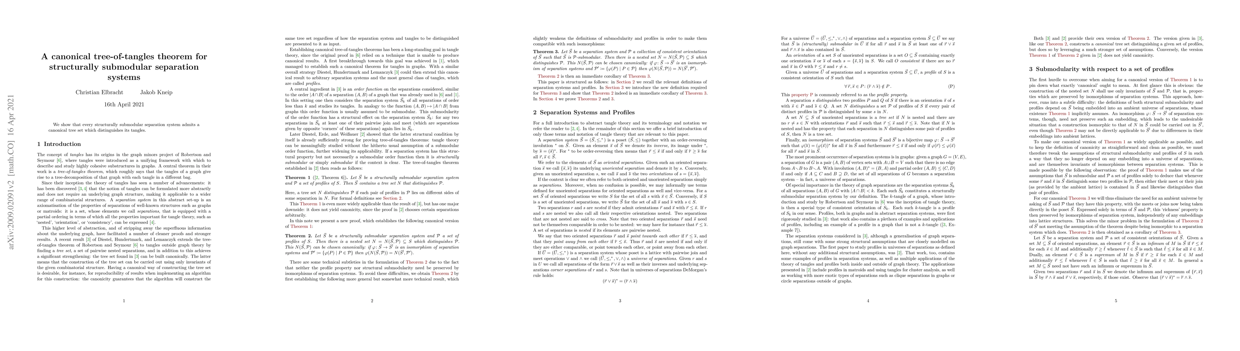 Summary: This paper proves the existence of a canonical tree set for structurally submodular separation systems that uniquely identifies their tangles, establishing a fundamental tree-of-tangles theorem.