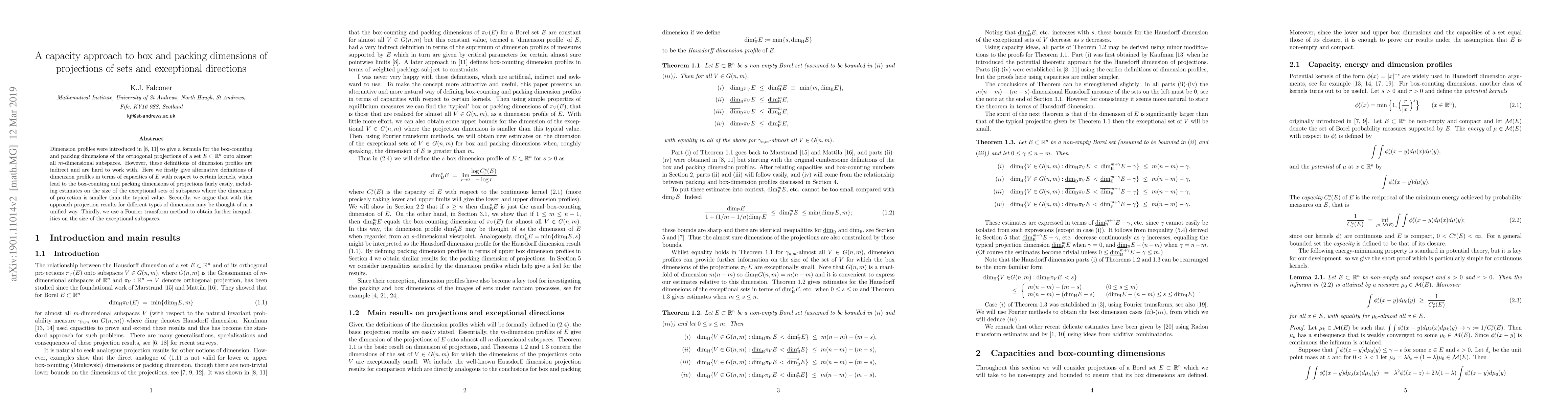 This paper introduces alternative definitions of dimension profiles using capacities and kernels to simplify the computation of box-counting and packing dimensions of set projections. It also provides estimates on exceptional subspaces where projection dimensions deviate from typical values and unifies various projection results under this new approach.