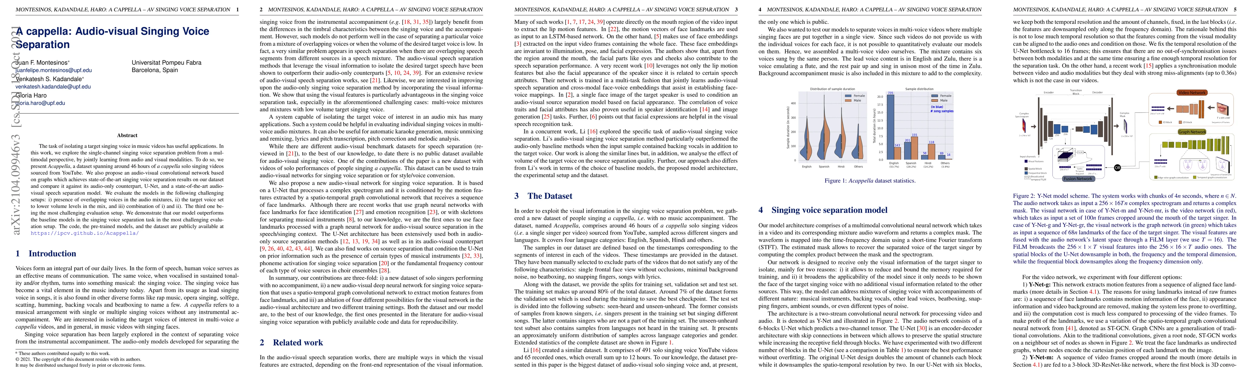 This paper presents Acappella, a new dataset and model for separating singing voices from a cappella solo videos, leveraging both audio and visual modalities. The proposed audio-visual convolutional network based on graphs outperforms existing audio-only and audio-visual speech separation models, especially in challenging scenarios with overlapping voices and lower volume levels.