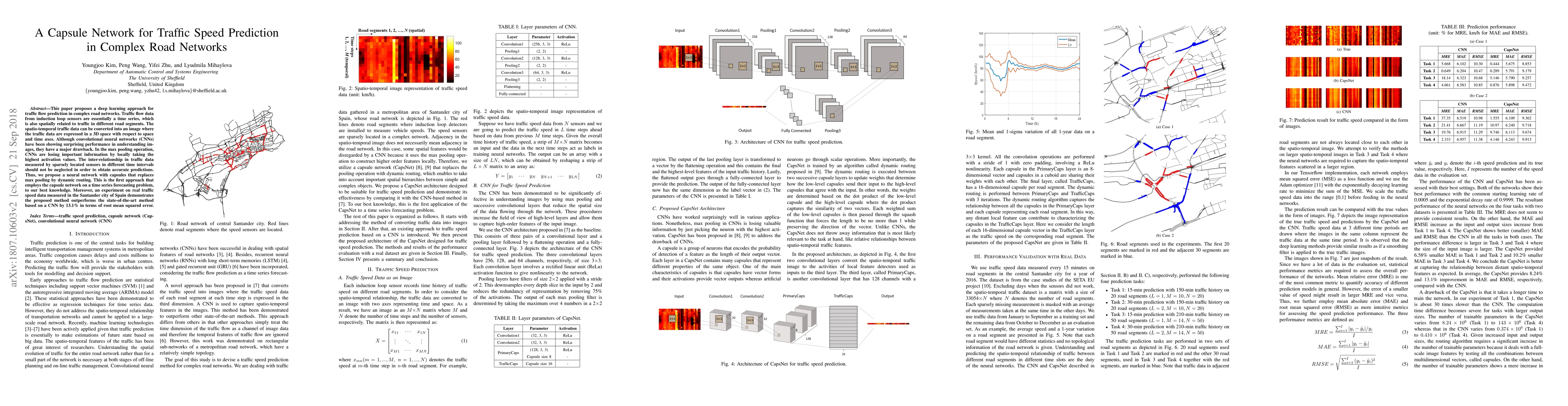 A new approach uses a capsule network to predict traffic speed in complex road networks, outperforming state-of-the-art methods by 13.1% on real data.