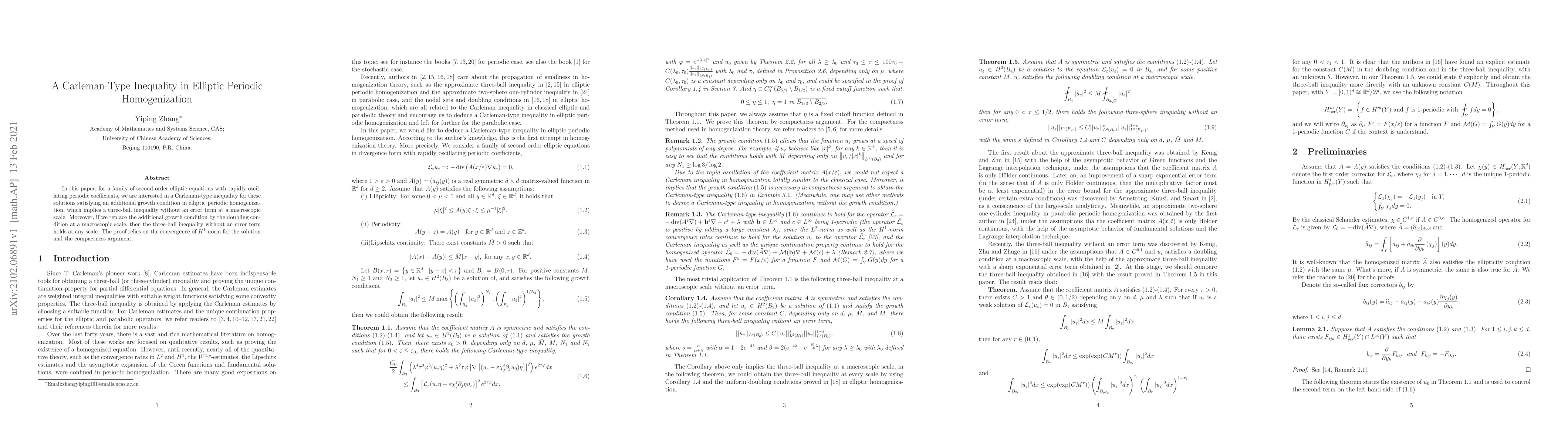 This paper establishes a Carleman-type inequality for solutions of rapidly oscillating periodic elliptic equations, leading to a three-ball inequality without an error term at macroscopic scales. The proof leverages $H^1$-norm convergence and compactness arguments.