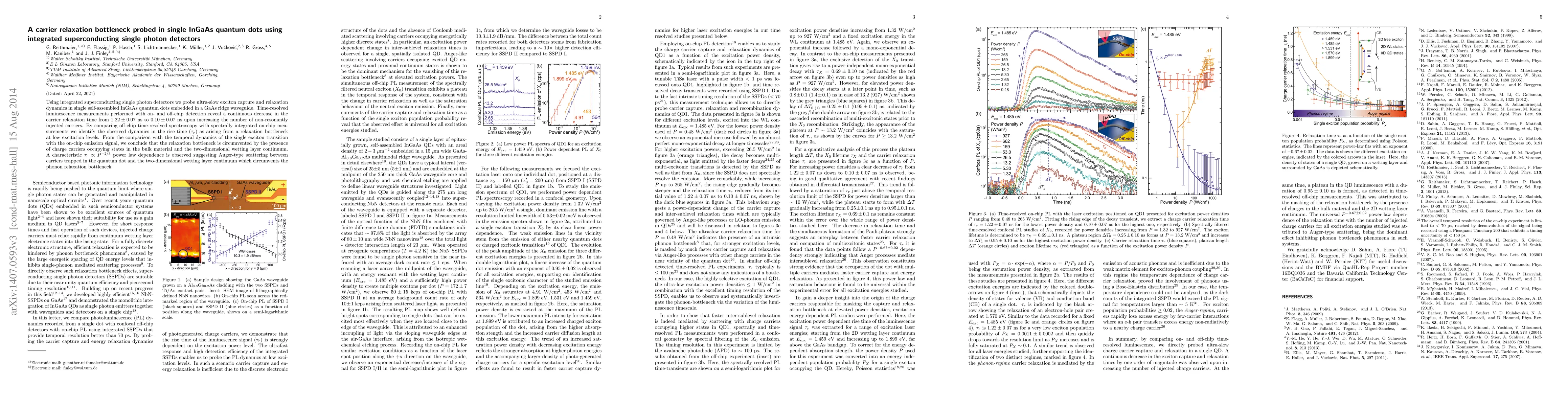 Researchers study ultra-slow carrier relaxation dynamics in single InGaAs quantum dots using superconducting single photon detectors. They find a bottleneck that slows down carrier release under low excitation levels, which is circumvented by charge carriers occupying the material's bulk and wetting layer continuum.