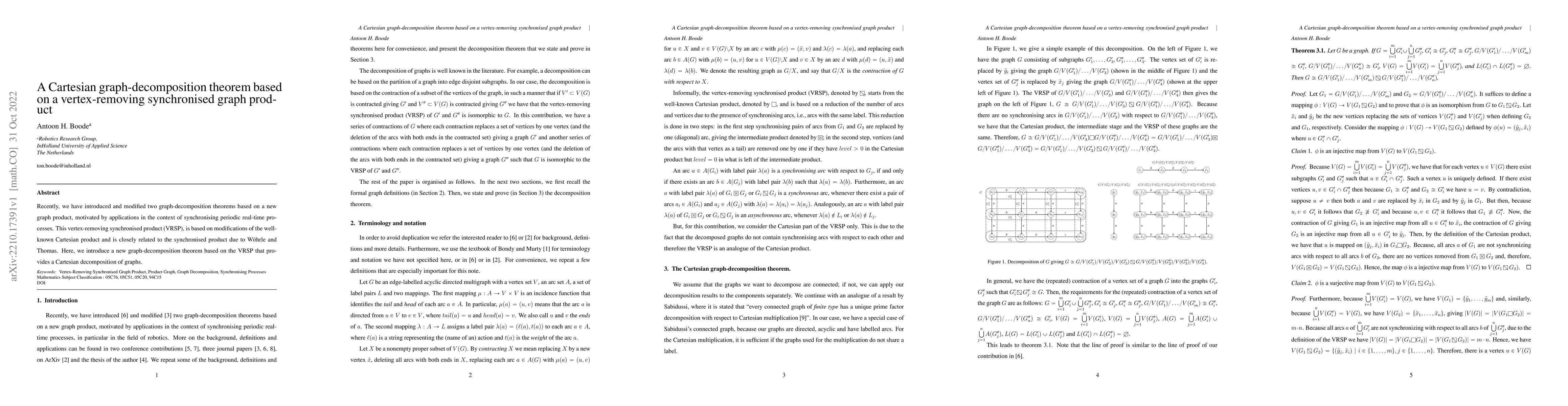 This paper presents a new graph-decomposition theorem based on the vertex-removing synchronised product (VRSP), a modified Cartesian product, and applies it to decompose graphs into Cartesian components. The VRSP is motivated by its relevance to synchronising periodic real-time processes.
