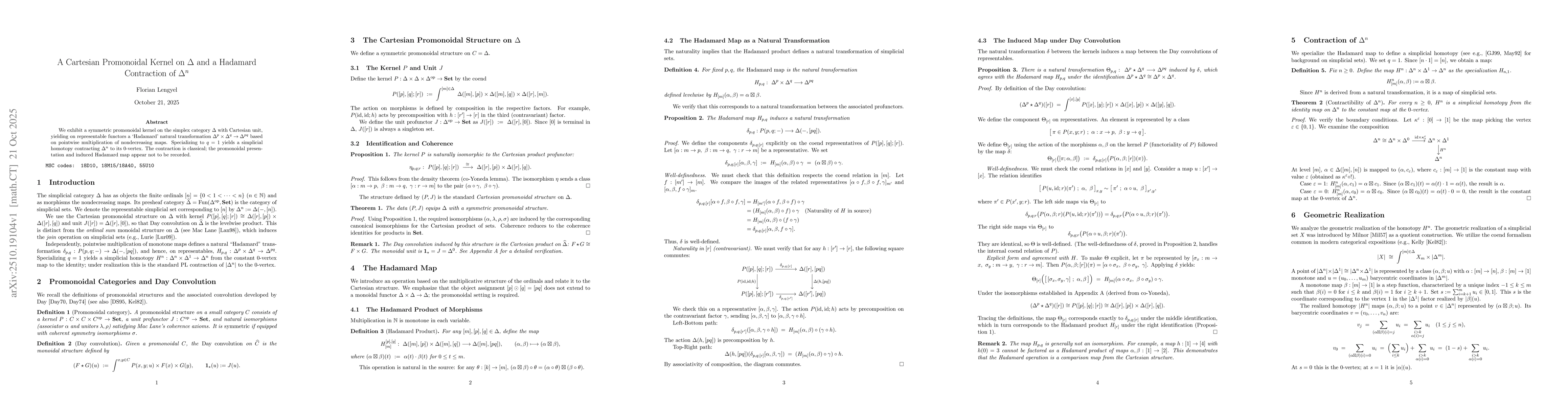 The paper introduces a Cartesian promonoidal kernel on Δ and constructs the Hadamard natural transformation through Day convolution, establishing its compatibility with simplicial set structures.