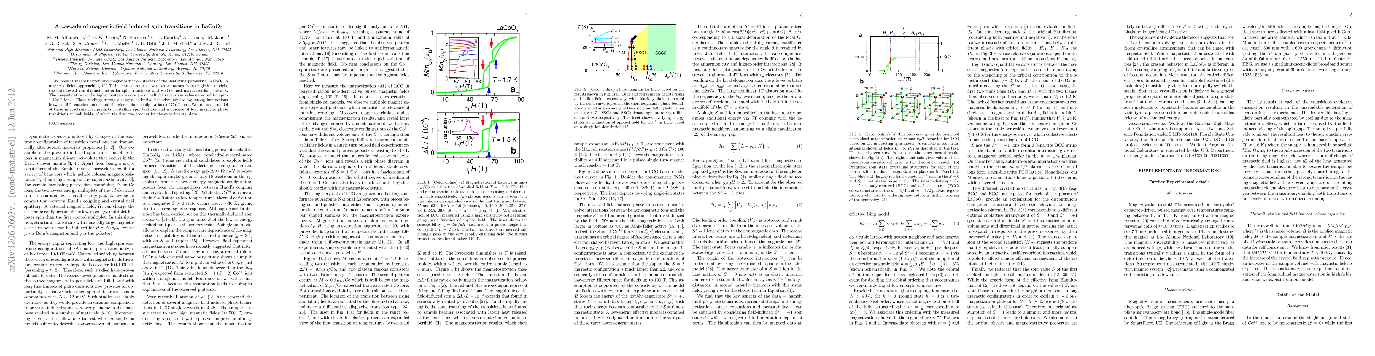 Researchers studied LaCoO3 in high magnetic fields, discovering two distinct spin transitions and plateaus that defy single-ion models, suggesting collective behavior among Co3+ ions.