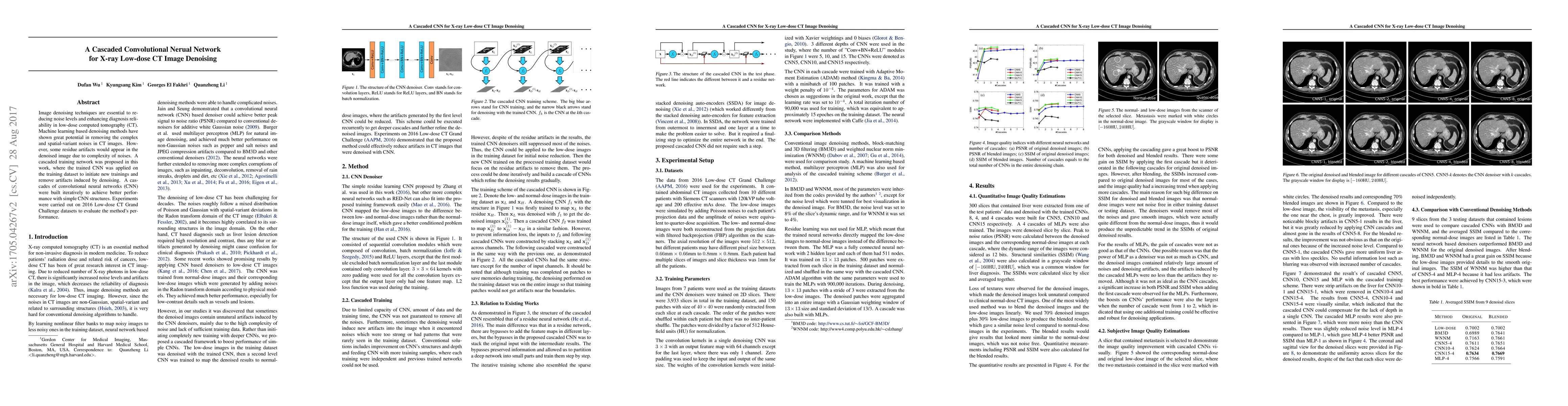 This paper proposes a cascaded convolutional neural network (CNN) for denoising low-dose CT images, iteratively refining the denoised output to reduce artifacts. The method was evaluated on the 2016 Low-dose CT Grand Challenge datasets, demonstrating improved performance over single CNN structures.
