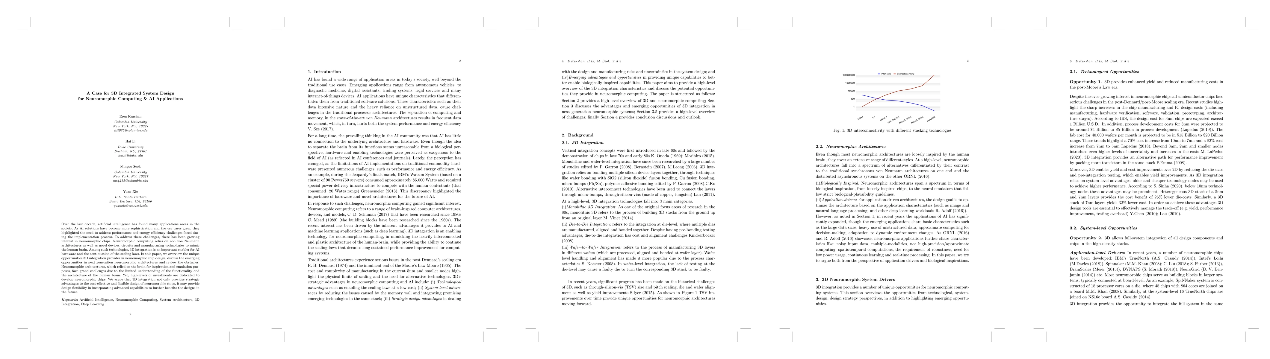 This paper explores the potential of 3D integration in neuromorphic computing to enhance performance and energy efficiency for AI applications. It highlights the advantages of 3D integration in neuromorphic chip design and discusses both the opportunities and challenges in developing next-generation neuromorphic architectures.