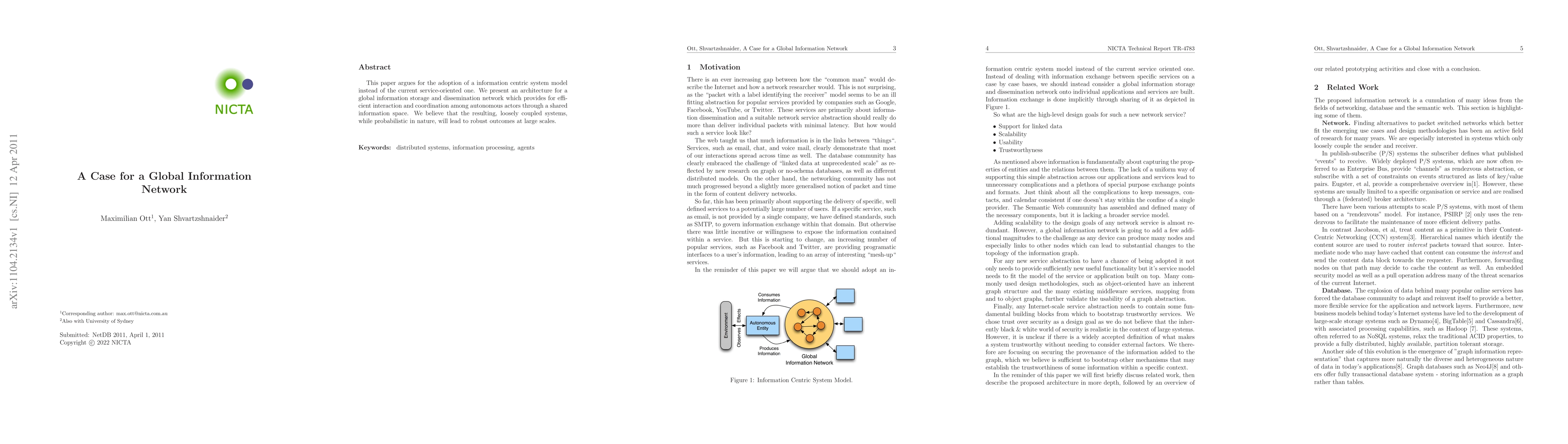 This paper argues for the adoption of a information centric system model instead of the current service-oriented one. We present an architecture for a global information storage and dissemination network which provides for efficient interaction and coordination among autonomous actors through a shared information space. We believe that the resulting, loosely coupled systems, while probabilistic in nature, will lead to robust outcomes at large scales.