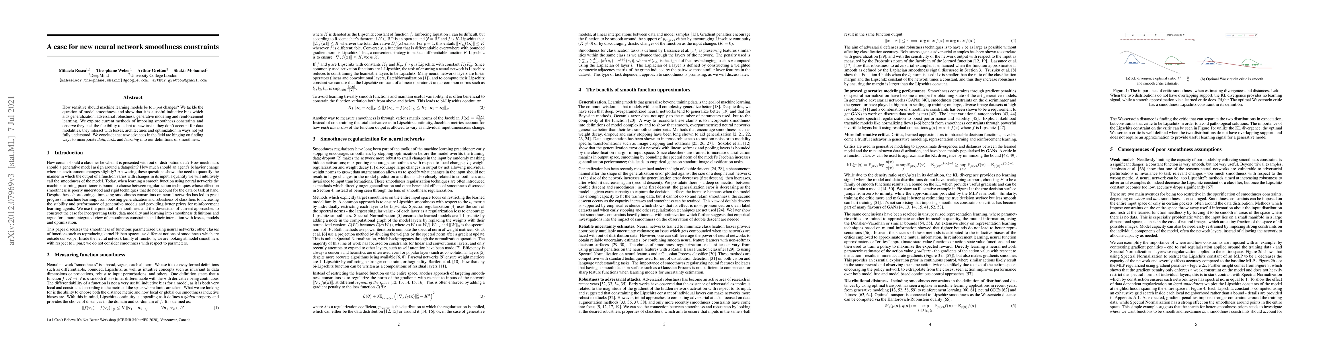 This paper argues that machine learning models should be smooth enough to generalize well, be robust against adversarial attacks, and generate realistic data, but current methods of imposing smoothness constraints lack flexibility. New advances aim to incorporate data, tasks, and learning into definitions of smoothness.