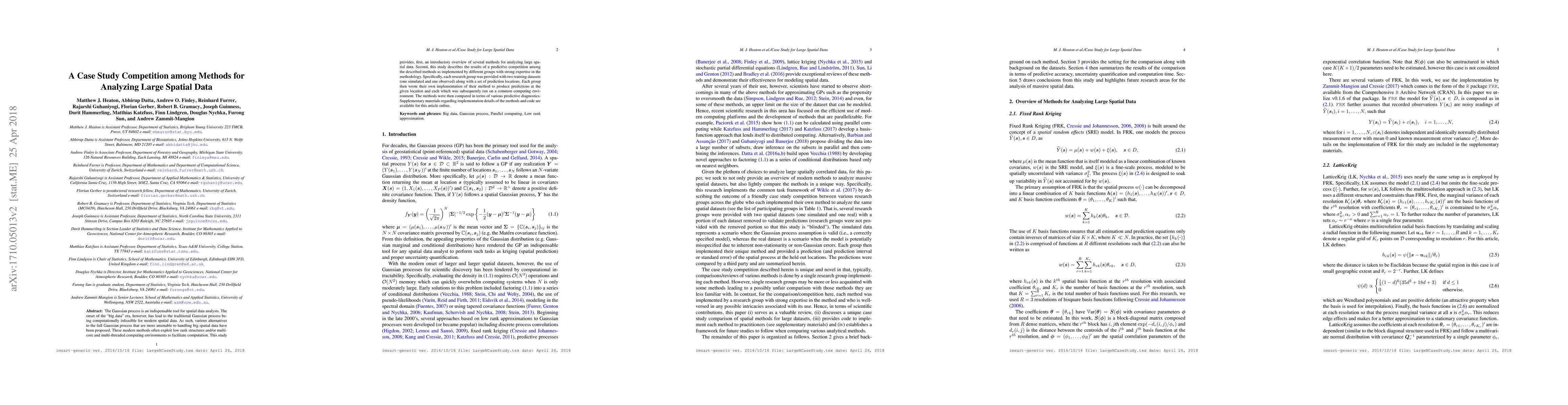 A competition among methods for analyzing large spatial data showed that some alternatives to traditional Gaussian process methods outperformed them in predictive diagnostics, highlighting their potential for big data analysis.