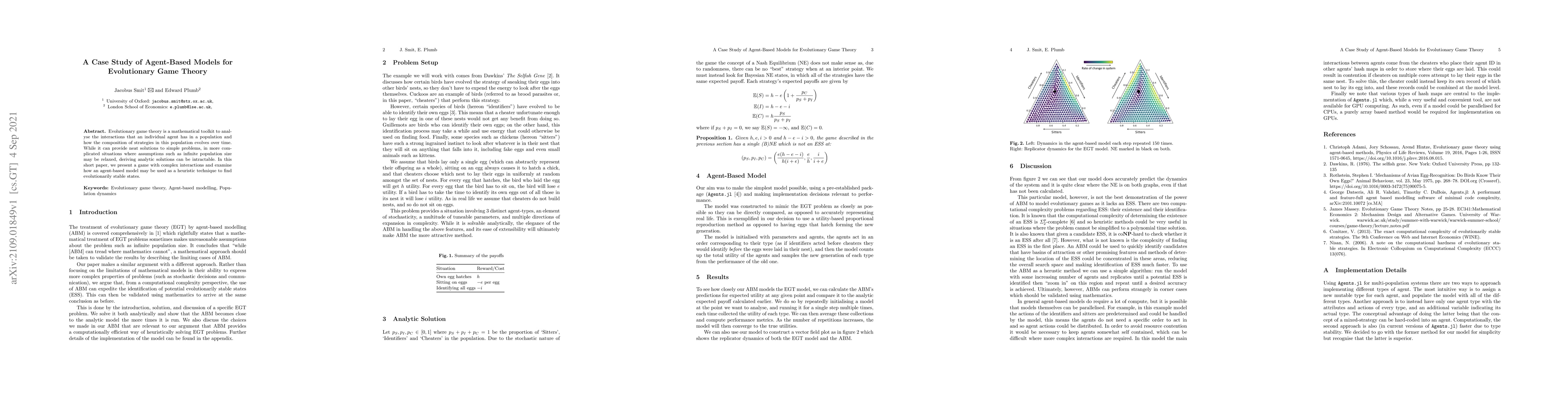 It presents a case study using an agent-based model to analyze the evolution of strategies in a population with complex interactions.