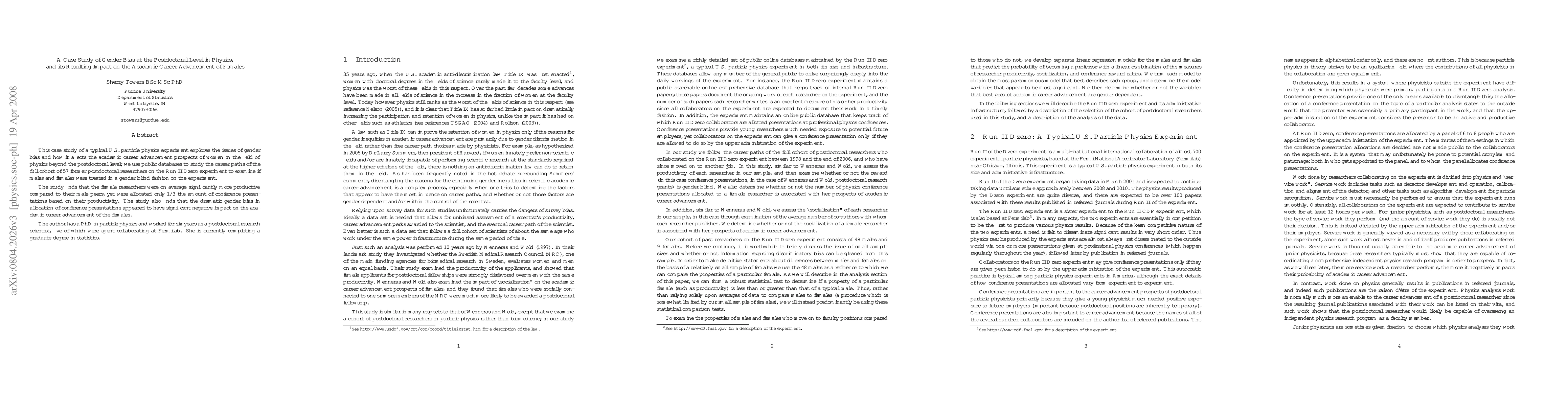 This case study investigates gender bias in a U.S. particle physics experiment, revealing that female postdoctoral researchers were significantly more productive but received only a third of the conference presentations compared to males. The study concludes that this bias negatively impacts women's academic career advancement.