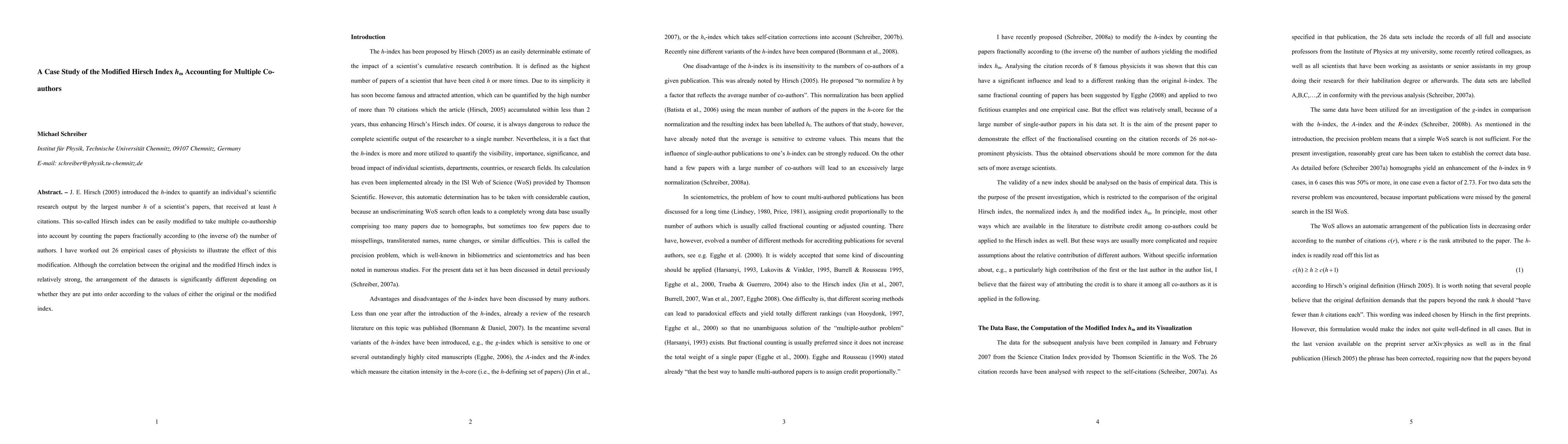 This paper proposes a modified Hirsch index to account for multiple co-authors by fractionally counting papers based on the number of authors. The study demonstrates through 26 empirical cases of physicists that while the modified index correlates strongly with the original, it significantly alters the ranking of researchers.