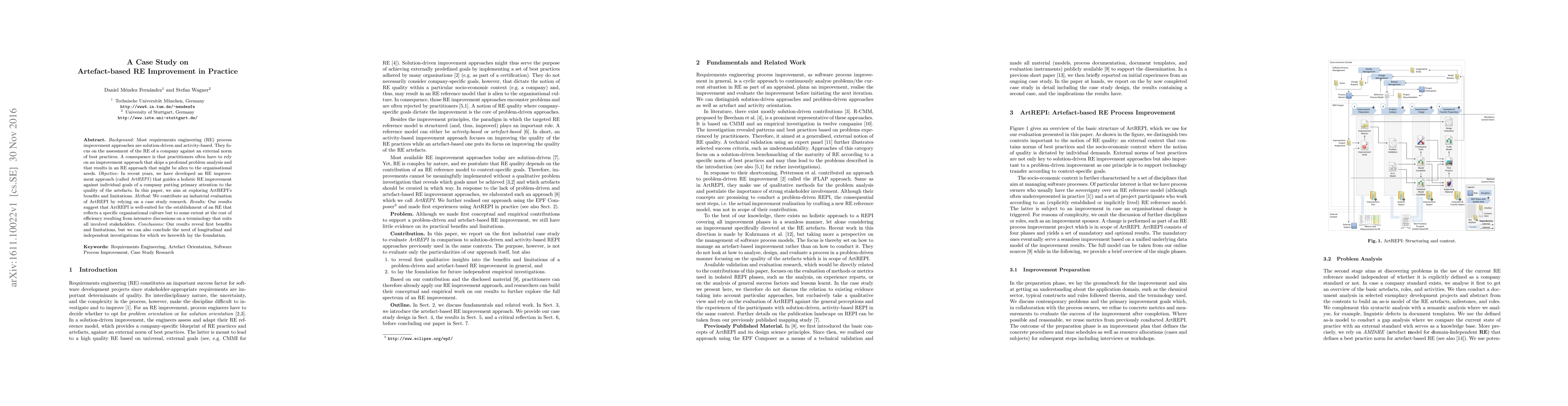 This paper evaluates Artefact-based RE Improvement in Practice (ArtREPI) through a case study, revealing its benefits for organizational culture but limitations in efficiency due to stakeholder agreement on terminology.