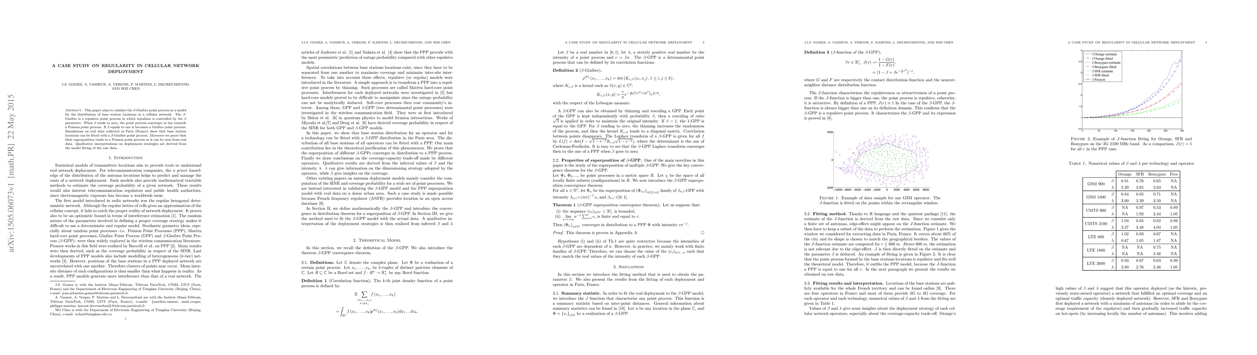 A study validates a repulsive point process model for cellular network deployment locations, showing that base station locations can be fitted with the $eta$-Ginibre model and tend towards a Poisson distribution as $eta$ approaches 1 or 0.