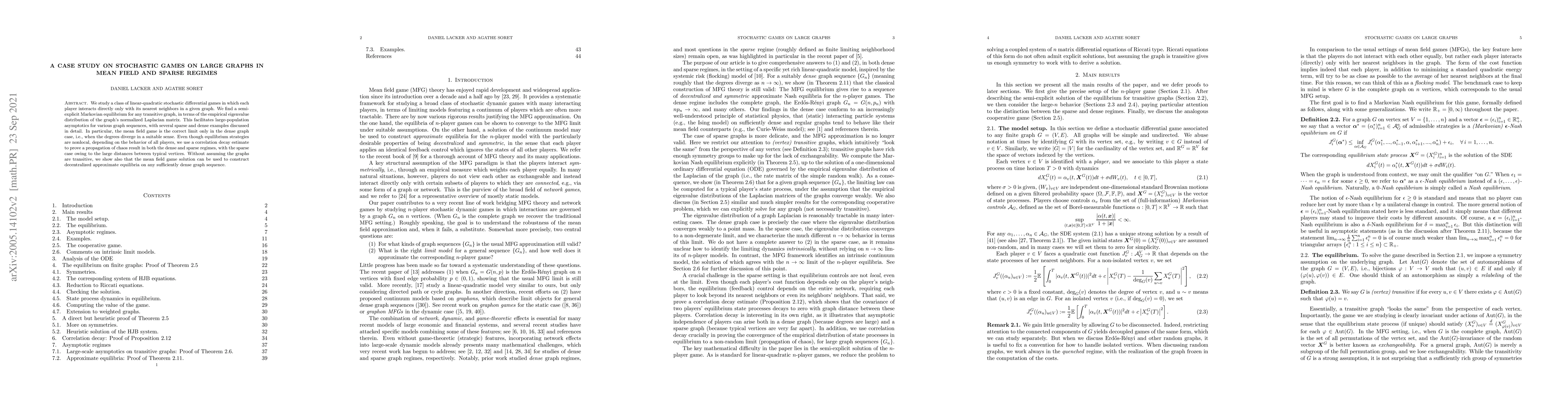 We study a class of linear-quadratic stochastic differential games in which each player interacts directly only with its nearest neighbors in a given graph. We find a semi-explicit Markovian equilibrium for any transitive graph, in terms of the empirical eigenvalue distribution of the graph's normalized Laplacian matrix. This facilitates large-population asymptotics for various graph sequences, with several sparse and dense examples discussed in detail. In particular, the mean field game is the correct limit only in the dense graph case, i.e., when the degrees diverge in a suitable sense. Even though equilibrium strategies are nonlocal, depending on the behavior of all players, we use a correlation decay estimate to prove a propagation of chaos result in both the dense and sparse regimes, with the sparse case owing to the large distances between typical vertices. Without assuming the graphs are transitive, we show also that the mean field game solution can be used to construct decentralized approximate equilibria on any sufficiently dense graph sequence.