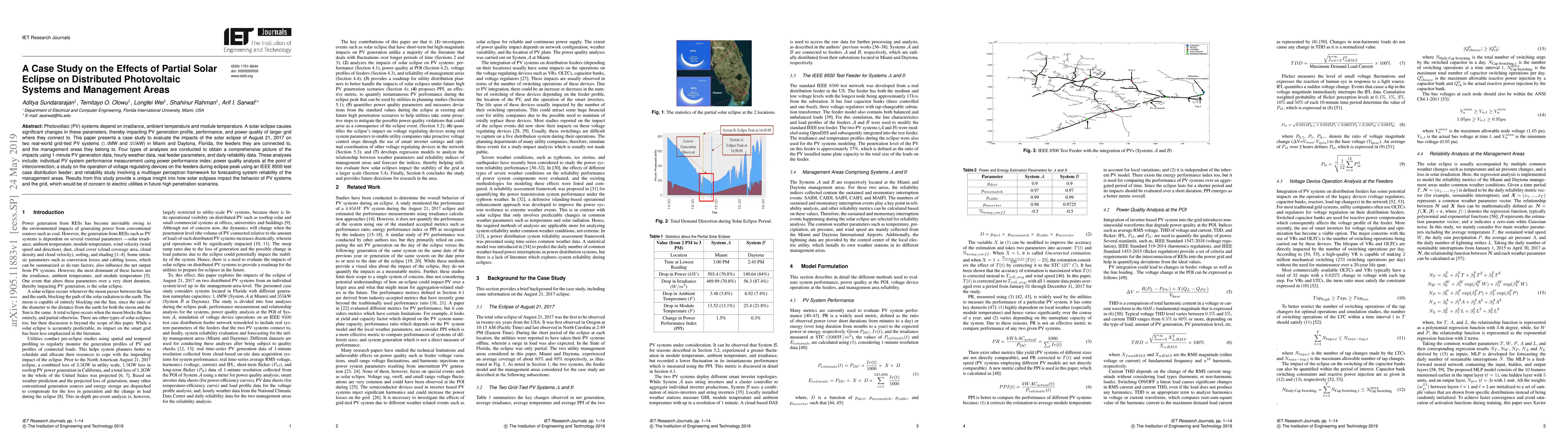 A study analyzed the impact of a solar eclipse on two real-world grid-tied PV systems in Florida, finding significant changes in performance and power quality during the eclipse. The results provide insights into how solar eclipses affect PV systems and grids, with implications for electric utilities in high penetration scenarios.