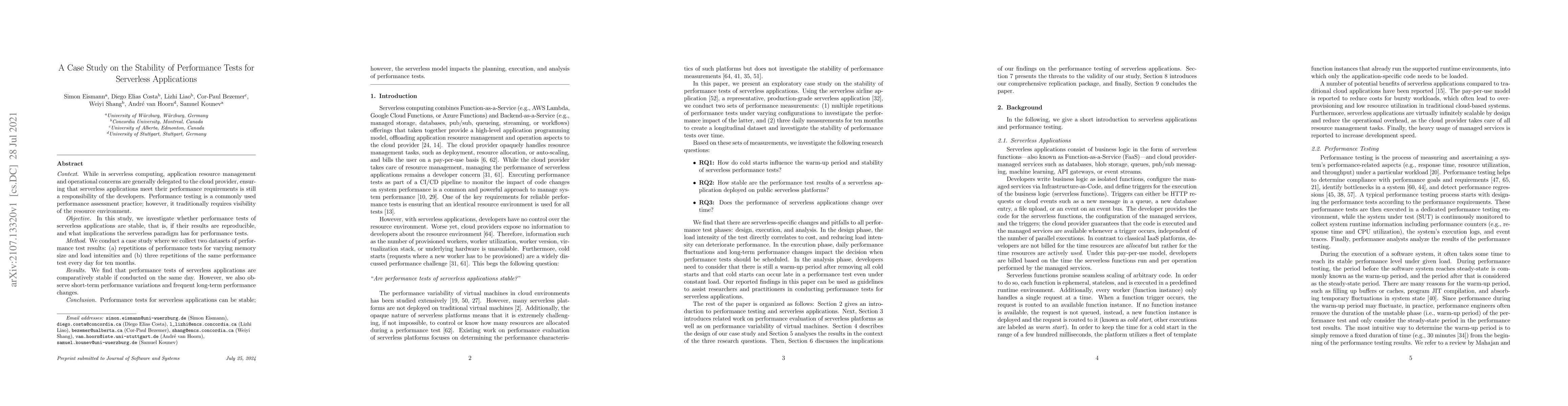 This study investigates the reproducibility of performance tests for serverless applications, finding stability within the same day but noting significant short-term and long-term variations. The serverless model affects performance test planning, execution, and analysis.