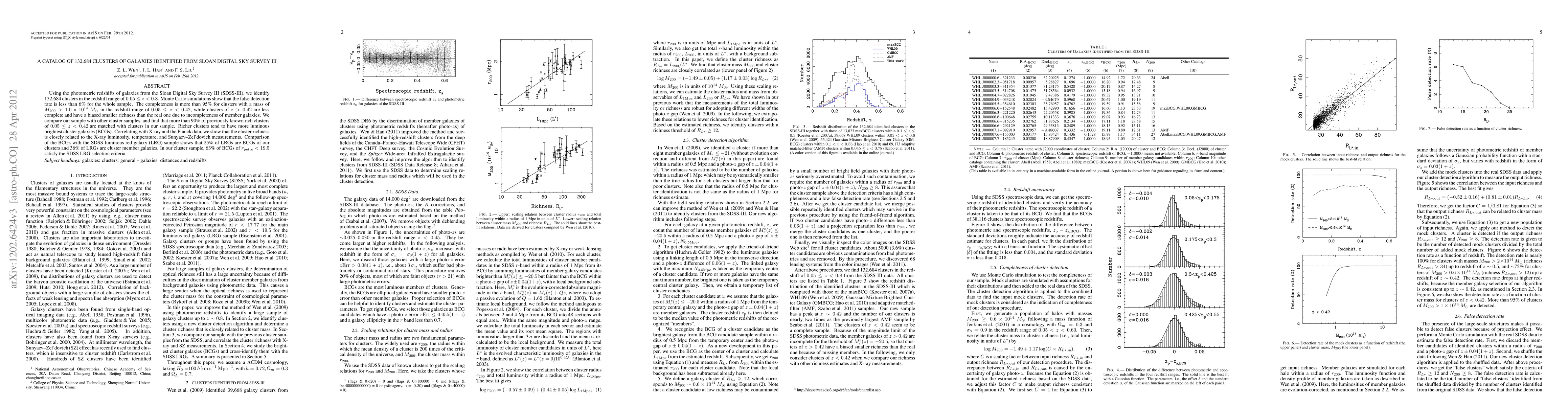 III (SDSS-III), we identify 132,684 clusters in the redshift range of