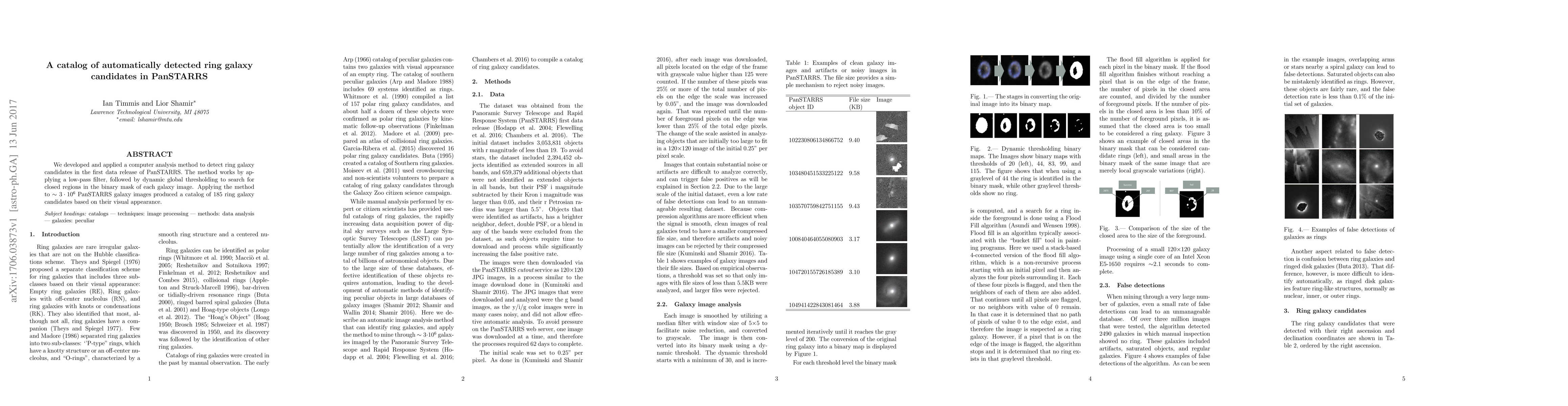 We developed and applied a computer analysis method to detect ring galaxy candidates in the first data release of PanSTARRS. The method works by applying a low-pass filter, followed by dynamic global thresholding to search for closed regions in the binary mask of each galaxy image. Applying the method to ~3*10^6 PanSTARRS galaxy images produced a catalog of 185 ring galaxy candidates based on their visual appearance.
