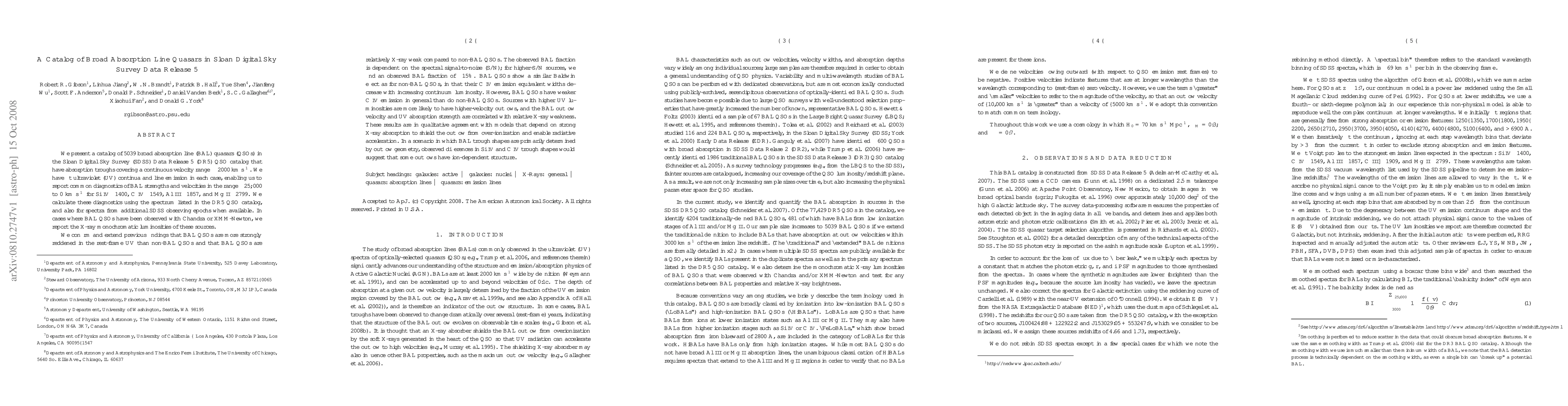 This paper catalogs 5039 broad absorption line (BAL) quasars from the Sloan Digital Sky Survey Data Release 5, analyzing their ultraviolet absorption features and X-ray luminosities. It finds BAL quasars exhibit stronger reddening and are more X-ray weak compared to non-BAL quasars, with a BAL fraction of about 15% for higher spectral signal-to-noise sources.