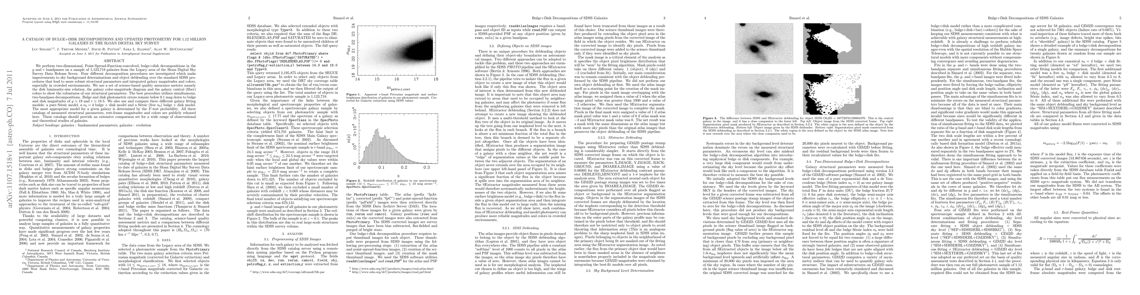 We perform two-dimensional, Point-Spread-Function-convolved, bulge+disk decompositions in the $g$ and $r$ bandpasses on a sample of 1,123,718 galaxies from the Legacy area of the Sloan Digital Sky Survey Data Release Seven. Four different decomposition procedures are investigated which make improvements to sky background determinations and object deblending over the standard SDSS procedures that lead to more robust structural parameters and integrated galaxy magnitudes and colors, especially in crowded environments. We use a set of science-based quality assurance metrics namely the disk luminosity-size relation, the galaxy color-magnitude diagram and the galaxy central (fiber) colors to show the robustness of our structural parameters. The best procedure utilizes simultaneous, two-bandpass decompositions. Bulge and disk photometric errors remain below 0.1 mag down to bulge and disk magnitudes of $g \simeq 19$ and $r \simeq 18.5$. We also use and compare three different galaxy fitting models: a pure Sersic model, a $n_b=4$ bulge + disk model and a Sersic (free $n_b$) bulge + disk model. The most appropriate model for a given galaxy is determined by the $F$-test probability. All three catalogs of measured structural parameters, rest-frame magnitudes and colors are publicly released here. These catalogs should provide an extensive comparison set for a wide range of observational and theoretical studies of galaxies.