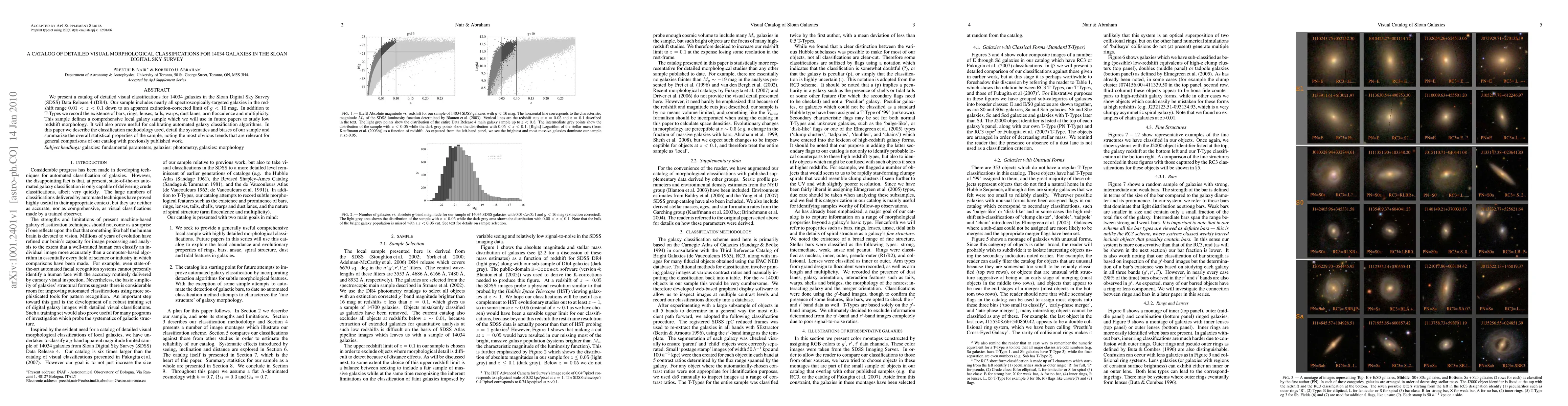 Researchers created a detailed visual classification catalog for 14,034 galaxies in the Sloan Digital Sky Survey, providing a comprehensive local galaxy sample for studying low-redshift morphology and calibrating automated classification algorithms.