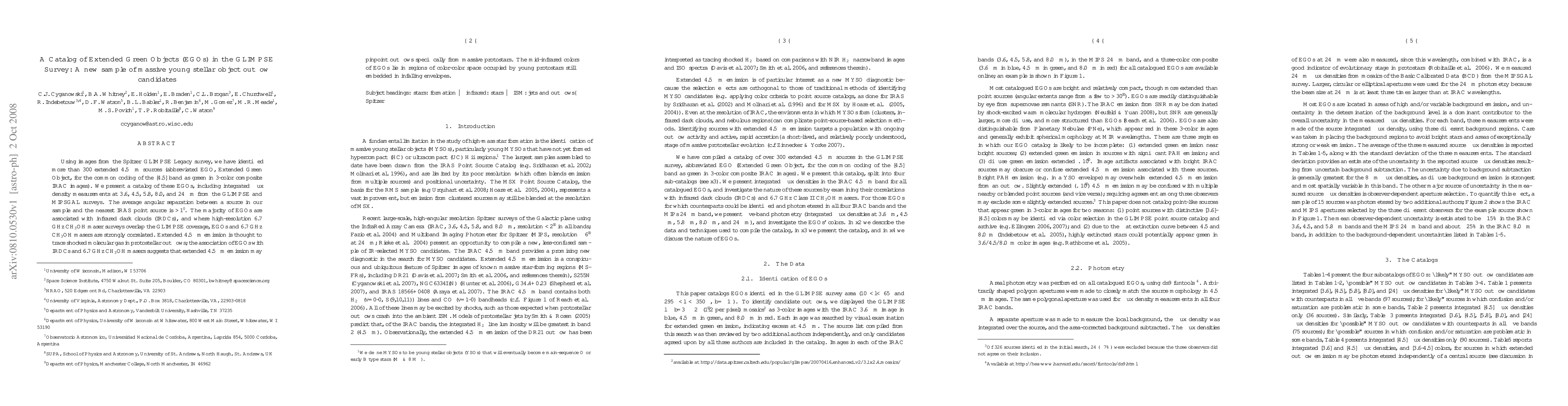 The research identifies over 300 Extended Green Objects (EGOs) in Spitzer GLIMPSE survey images, indicating potential massive young stellar outflows. EGOs, associated with IRDCs and 6.7 GHz methanol masers, show mid-infrared colors of young, embedded protostars, suggesting they trace shocked gas in outflows from massive protostars.