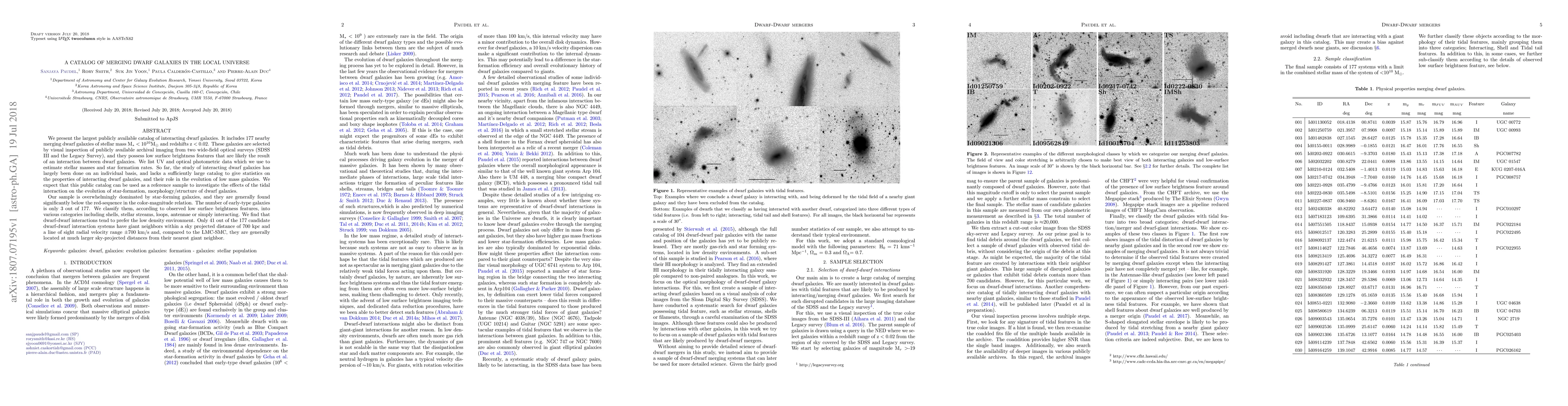 This paper presents a comprehensive catalog of 177 merging dwarf galaxies, selected from archival imaging surveys, providing the largest publicly available dataset for studying dwarf galaxy interactions. The catalog aims to offer statistical insights into the effects of tidal interactions on the evolution of low-mass galaxies.