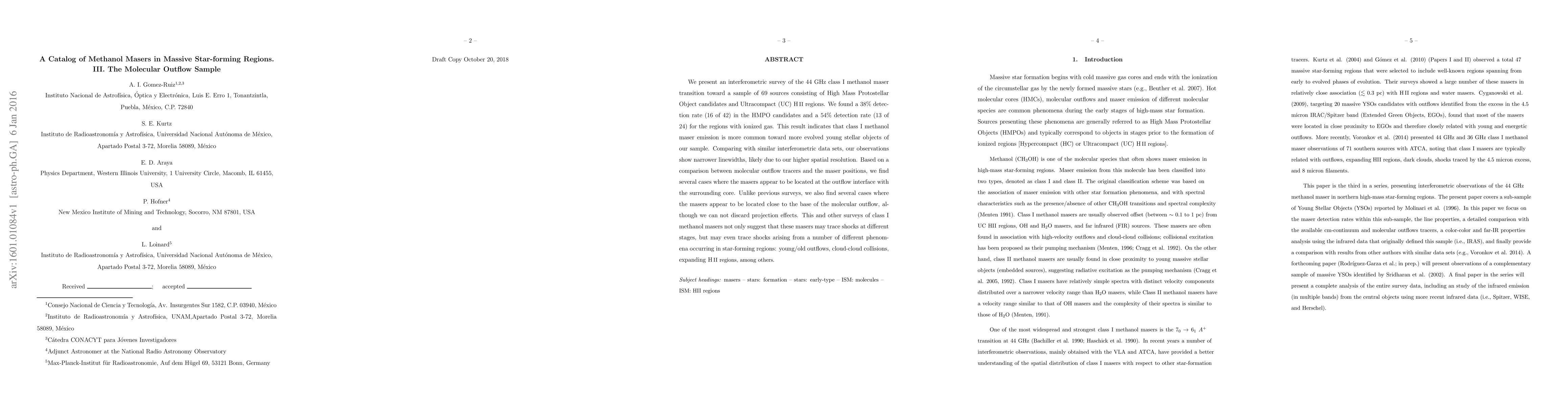 A survey of 69 massive star-forming regions detected class I methanol masers in 38% of High Mass Protostellar Object candidates and 54% of Ultracompact H II regions, suggesting these masers may trace shocks from various phenomena.