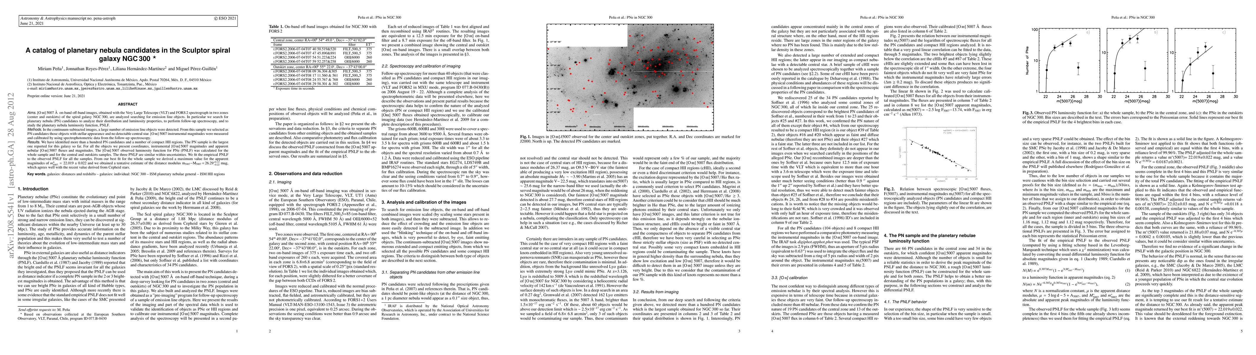[OIII]5007 on-band off-band images, obtained with the VLT and FORS2 spectrograph in two zones (center and outskirts) of the spiral galaxy NGC300, are analyzed searching for emission line objects. In particular we search for planetary nebula (PN) candidates to analyze their distribution and luminosity properties, to perform follow-up spectroscopy, and to study the planetary nebula luminosity function, PNLF. In the continuum-subtracted images, a large number of emission line objects were detected. From this sample we selected as PN candidates those objects with stellar appearance and no detectable central star. [OIII]5007 instrumental magnitudes were measured and calibrated by using spectrophotometric data from the follow-up spectroscopy. We identified more than a hundred PN candidates and a number of compact HII regions. The PN sample is the largest one reported for this galaxy so far. For all the objects we present coordinates, instrumental [OIII]5007 magnitudes and apparent nebular [OIII]5007 fluxes and magnitudes. The [OIII]5007 observed luminosity function for PNe (PNLF) was calculated for the whole sample and for the central and outskirts samples. The three PNLF are similar within uncertainties. We fit the empirical PNLF to the observed PNLF for all the samples. From our best fit for the whole sample we derived a maximum value for the apparent magnitudes of m*(5007)=22.019\pm0.022 and we obtained a tentative estimate of the distance modulus m(5007)-M(5007)= 26.29 {+0.12} {-0.22} mag, which agrees well with the recent value derived from Cepheid stars.