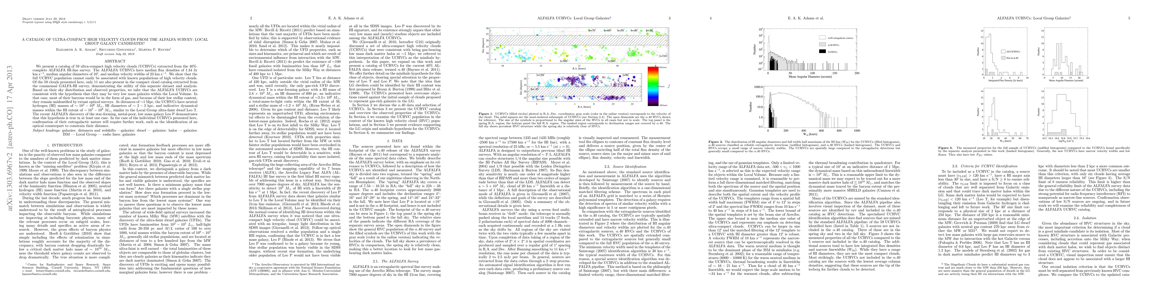 This paper catalogs 59 ultra-compact high velocity clouds (UCHVCs) from the ALFALFA HI-line survey, suggesting they may represent very low-mass galaxies within the Local Volume. These clouds, with gas-dominated baryonic content, remain undetected in optical surveys due to their low stellar content.