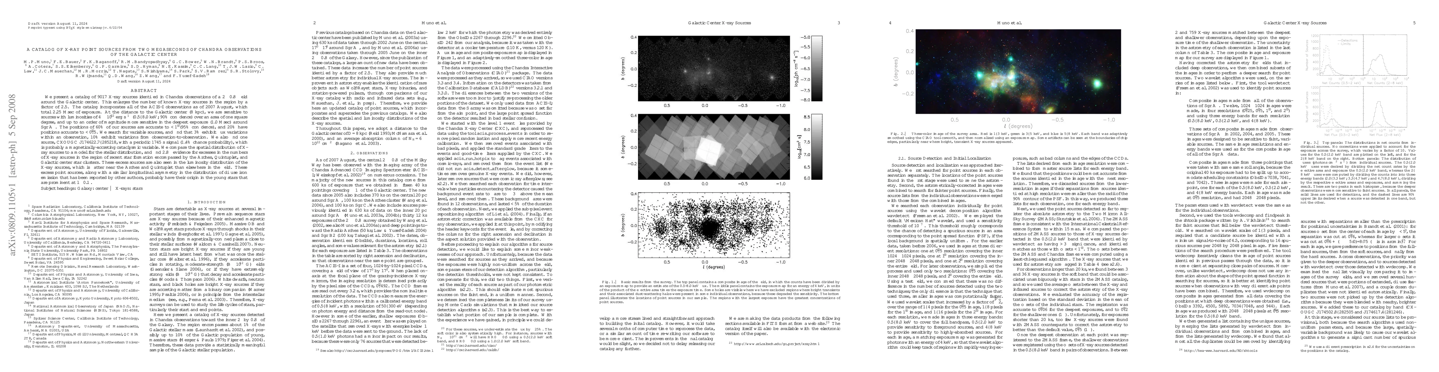 This paper catalogs 9017 X-ray sources identified in Chandra observations of the Galactic Center, doubling the known count in the region. The catalog includes 2.25 megaseconds of ACIS-I data, revealing sources with luminosities greater than 4e32 erg/s, with 60% of sources having positional accuracies better than 1".
