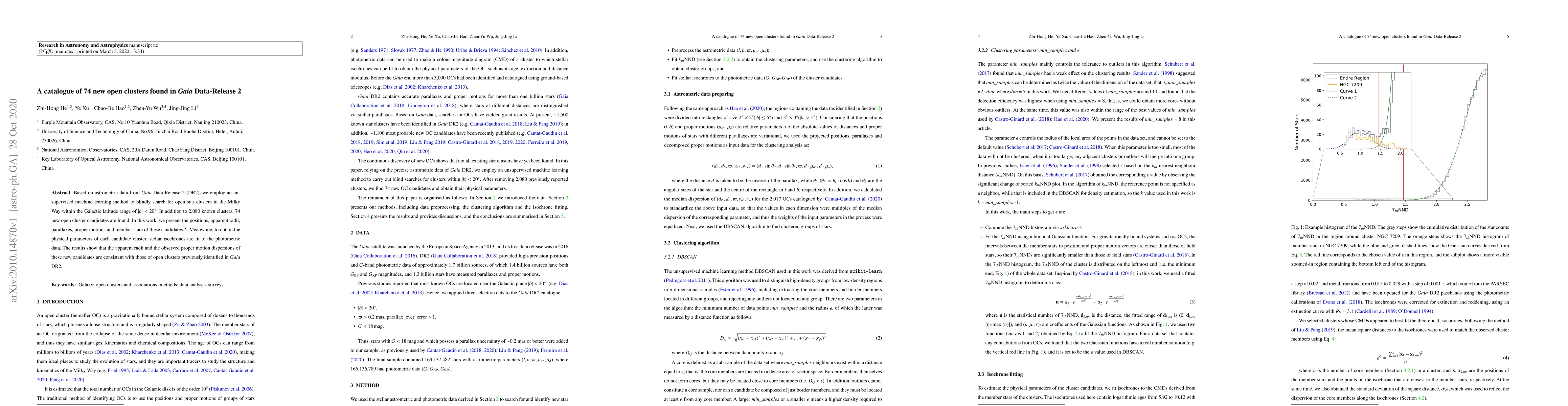This study identifies 74 new open cluster candidates in the Milky Way using Gaia Data-Release 2 and an unsupervised machine learning method. The research provides detailed parameters including positions, apparent radii, parallaxes, proper motions, and member stars for these candidates, and fits stellar isochrones to derive their physical properties.
