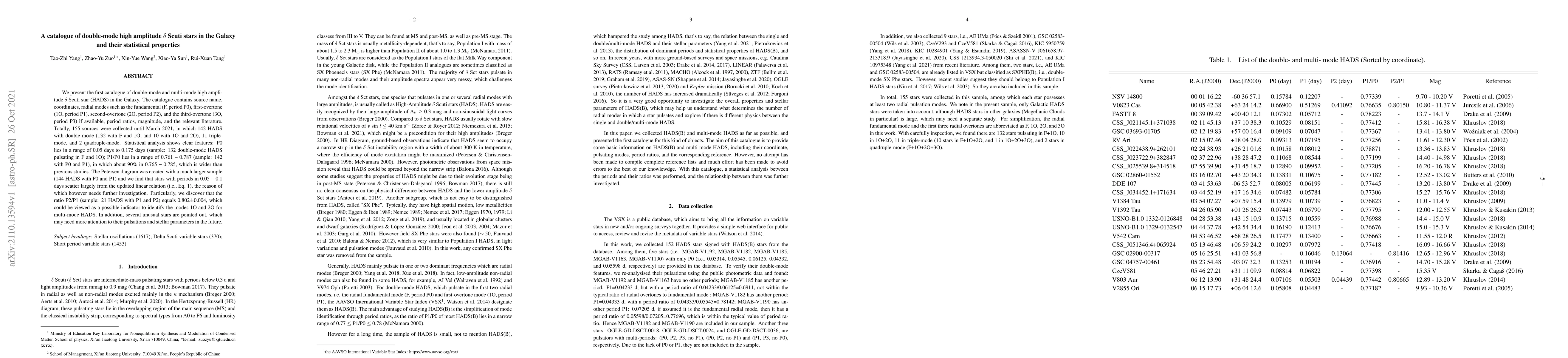 This paper presents the first catalogue of double-mode and multi-mode high amplitude δ Scuti stars (HADS) in the Galaxy, including detailed statistical properties. The catalogue features 155 sources, with 142 double-mode HADS, and reveals new period ratios and potential indicators for identifying pulsation modes.