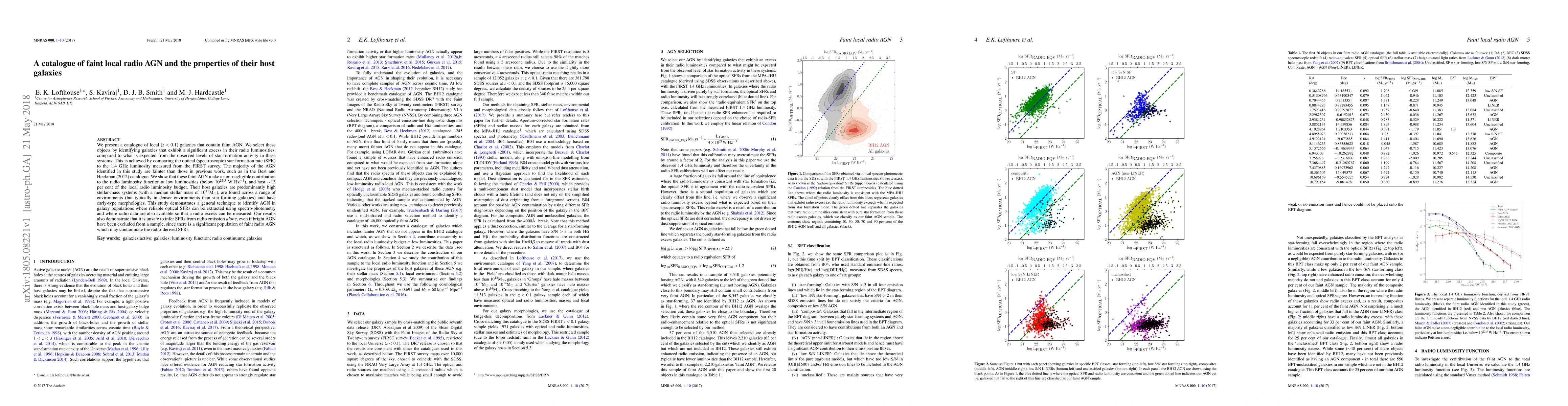 This paper catalogs local galaxies hosting faint AGN identified by radio luminosity exceeding star-formation rates, contributing significantly to low-luminosity radio emissions. The host galaxies are typically high-mass, early-type systems found in denser environments than star-forming galaxies.