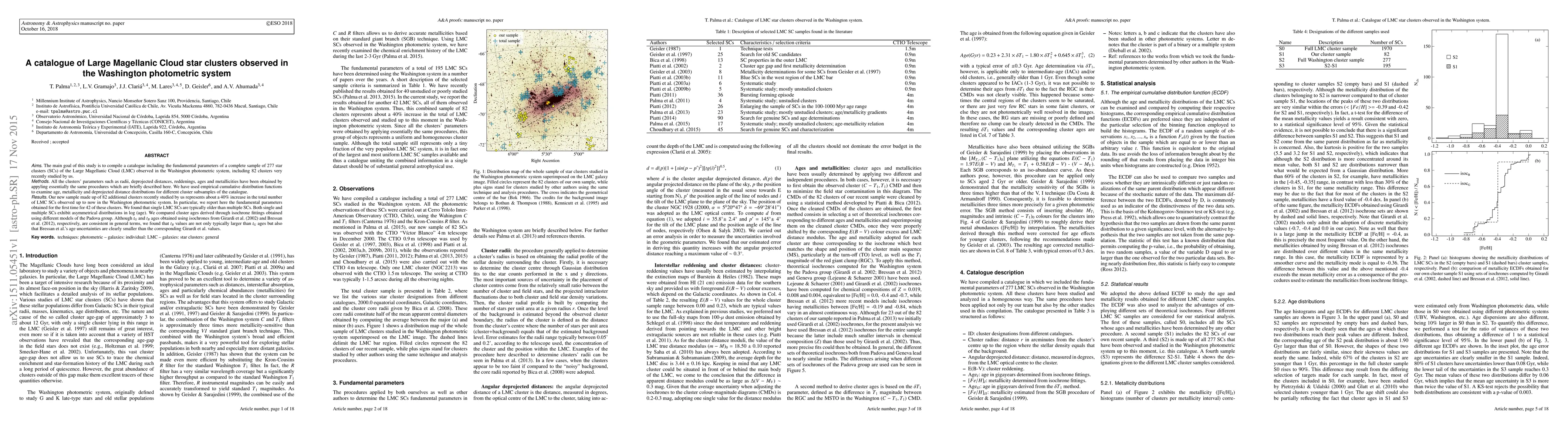 This study compiles a catalogue of 277 star clusters in the Large Magellanic Cloud (LMC) using the Washington photometric system, including 82 newly studied clusters. The catalogue provides fundamental parameters such as radii, distances, reddenings, ages, and metallicities, revealing that single LMC clusters tend to be older than multiple clusters, with both types showing asymmetrical age distributions.