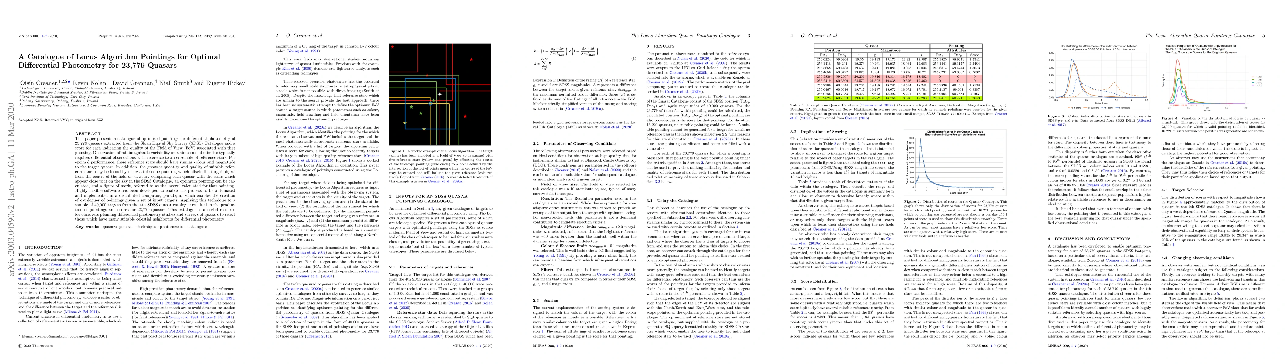 This paper presents a catalogue of optimised pointings for differential photometry of 23,779 quasars extracted from the Sloan Digital Sky Survey (SDSS) Catalogue and a score for each indicating the quality of the Field of View (FoV) associated with that pointing. Observation of millimagnitude variability on a timescale of minutes typically requires differential observations with reference to an ensemble of reference stars. For optimal performance, these reference stars should have similar colour and magnitude to the target quasar. In addition, the greatest quantity and quality of suitable reference stars may be found by using a telescope pointing which offsets the target object from the centre of the field of view. By comparing each quasar with the stars which appear close to it on the sky in the SDSS Catalogue, an optimum pointing can be calculated, and a figure of merit, referred to as the "score" calculated for that pointing. Highly flexible software has been developed to enable this process to be automated and implemented in a distributed computing paradigm, which enables the creation of catalogues of pointings given a set of input targets. Applying this technique to a sample of 40,000 targets from the 4th SDSS quasar catalogue resulted in the production of pointings and scores for 23,779 quasars. This catalogue is a useful resource for observers planning differential photometry studies and surveys of quasars to select those which have many suitable celestial neighbours for differential photometry