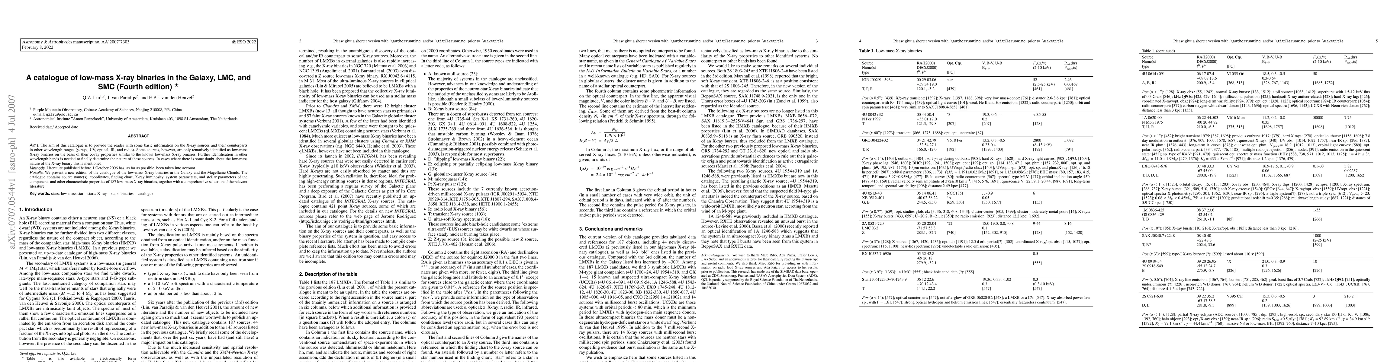 This paper updates a catalogue of 187 low-mass X-ray binaries in the Galaxy, LMC, and SMC, including their coordinates, luminosities, and system parameters, with a focus on providing basic information across various wavelengths. Some sources remain tentatively identified and require further verification.