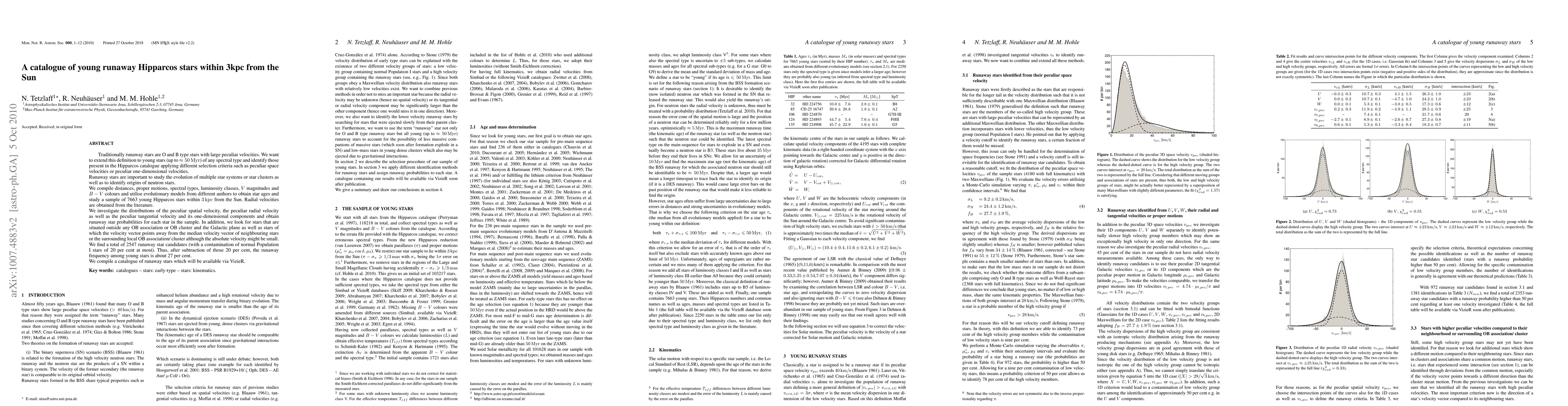 This paper identifies young runaway stars (up to 50 Myr) within 3 kpc from the Sun using the Hipparcos catalogue, finding 2547 candidates with a 27% runaway frequency after correcting for contamination. The catalogue includes detailed stellar parameters and is available via VizieR.
