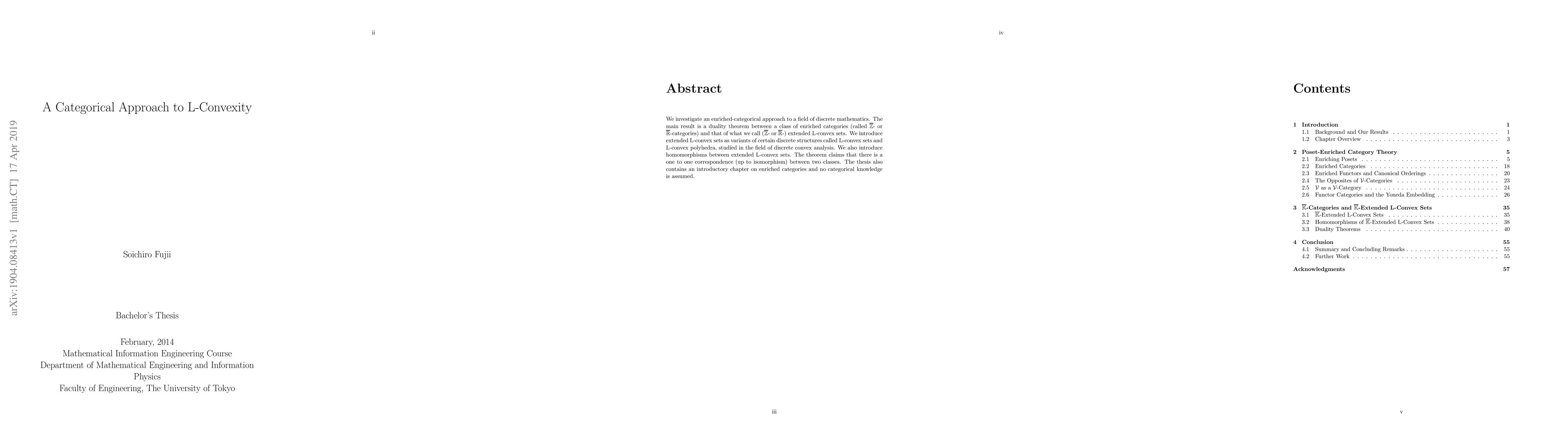 This paper explores an enriched-categorical framework for L-convex sets, establishing a duality theorem between enriched categories and extended L-convex sets. It introduces the concept of extended L-convex sets, along with homomorphisms, and provides an introductory chapter for readers without categorical background.