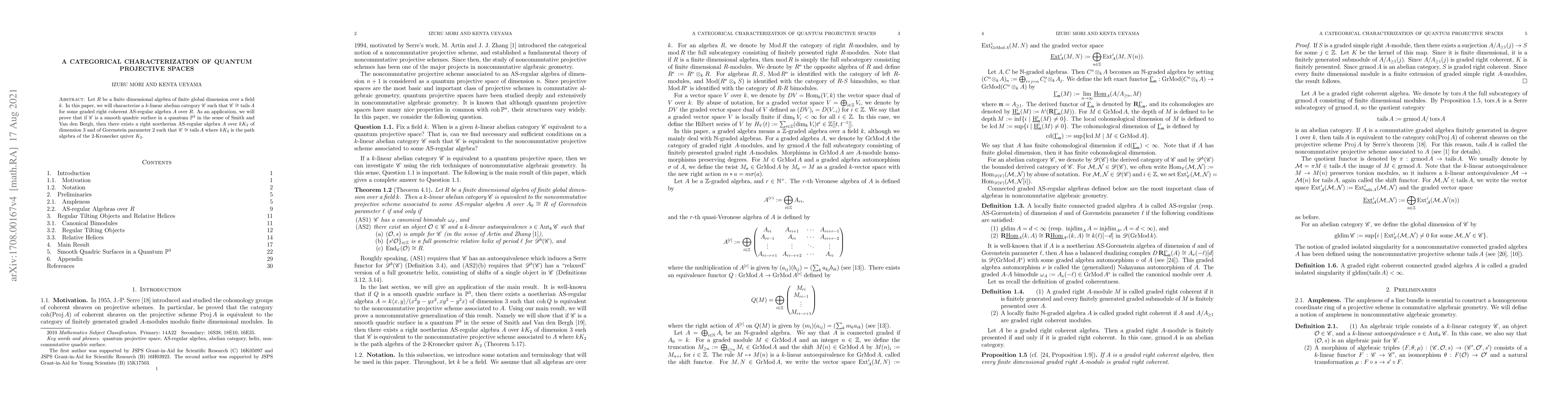 Let $R$ be a finite dimensional algebra of finite global dimension over a field $k$. In this paper, we will characterize a $k$-linear abelian category $\mathscr C$ such that $\mathscr C\cong \operatorname {tails} A$ for some graded right coherent AS-regular algebra $A$ over $R$. As an application, we will prove that if $\mathscr C$ is a smooth quadric surface in a quantum $\mathbb P^3$ in the sense of Smith and Van den Bergh, then there exists a right noetherian AS-regular algebra $A$ over $kK_2$ of dimension 3 and of Gorenstein parameter 2 such that $\mathscr C\cong \operatorname {tails} A$ where $kK_2$ is the path algebra of the 2-Kronecker quiver.