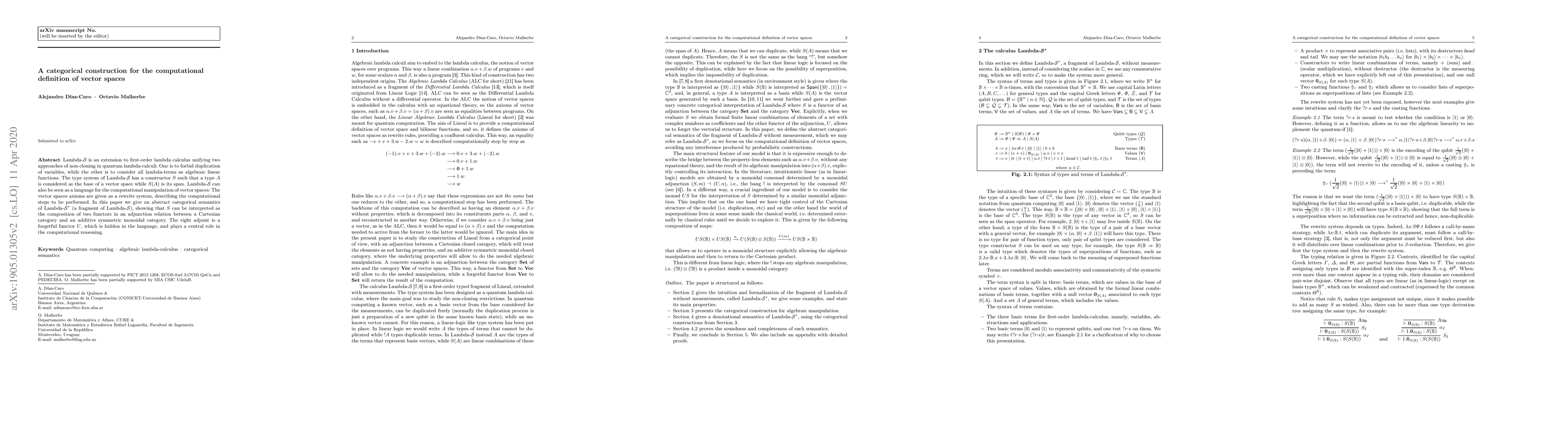 Lambda-S is an extension to first-order lambda calculus unifying two approaches of non-cloning in quantum lambda-calculi. One is to forbid duplication of variables, while the other is to consider all lambda-terms as algebraic linear functions. The type system of Lambda-S has a constructor S such that a type A is considered as the base of a vector space while S(A) is its span. Lambda-S can also be seen as a language for the computational manipulation of vector spaces: The vector spaces axioms are given as a rewrite system, describing the computational steps to be performed. In this paper we give an abstract categorical semantics of Lambda-S* (a fragment of Lambda-S), showing that S can be interpreted as the composition of two functors in an adjunction relation between a Cartesian category and an additive symmetric monoidal category. The right adjoint is a forgetful functor U, which is hidden in the language, and plays a central role in the computational reasoning.