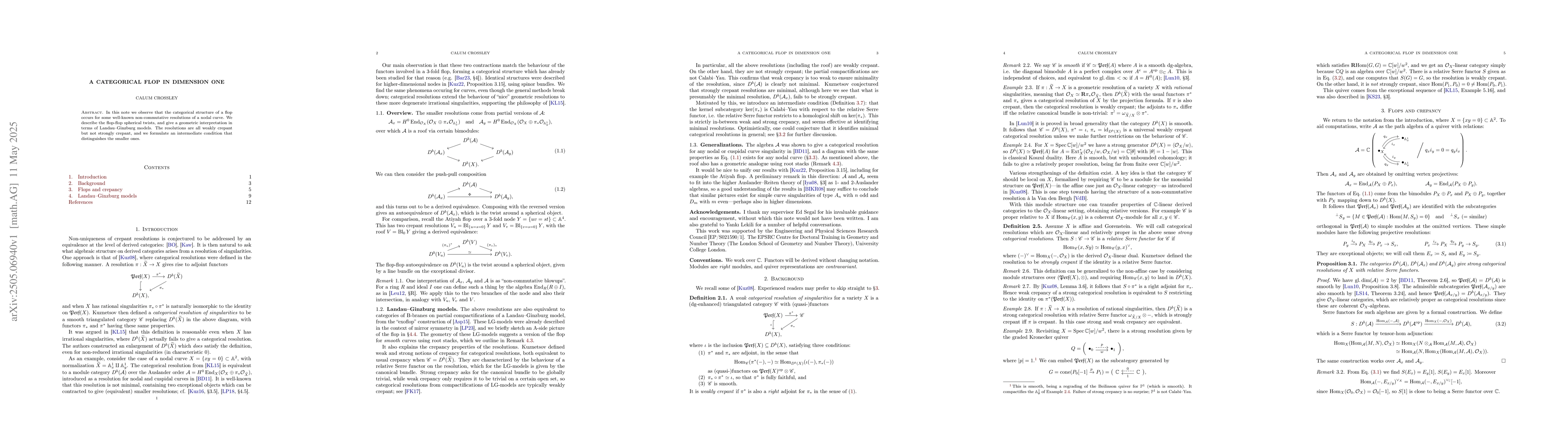The paper observes categorical structure of a flop for non-commutative resolutions of a nodal curve, describing flop-flop spherical twists and providing a geometric interpretation via Landau--Ginzburg models.