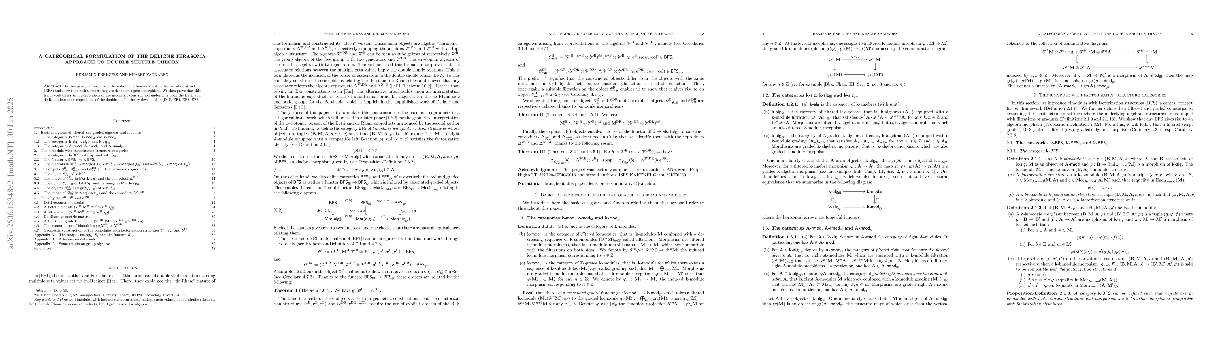 In this paper, we introduce the notion of a bimodule with a factorization structure (BFS) and show that such a structure gives rise to an algebra morphism. We then prove that this framework offers an interpretation of the geometric construction underlying both the Betti and de Rham harmonic coproducts of the double shuffle theory developed in \cite{DeT, EF1, EF2, EF3}.