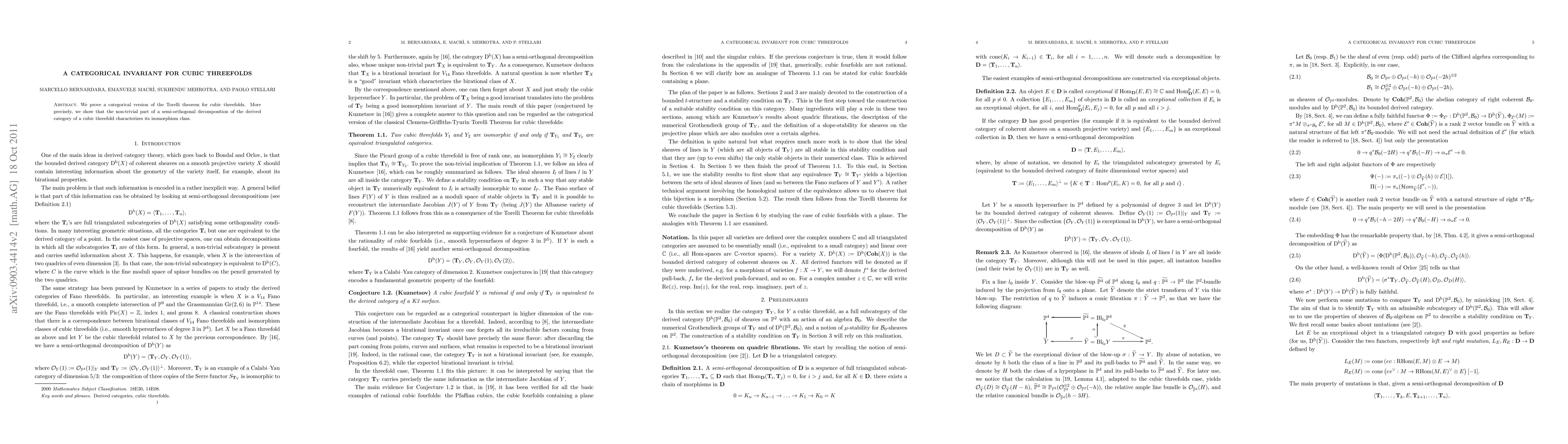 The approach combines advanced concepts from derived categories, stability conditions, and triangulated geometry to achieve a Torelli-type result for cubic threefolds, offering a fresh perspective in algebraic geometry.
